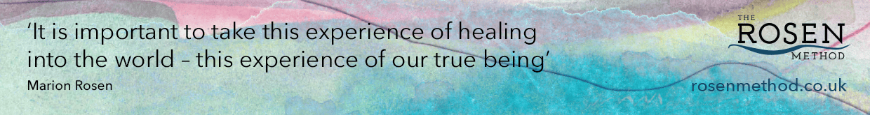 Immerse yourself in something beautiful, boundaried, loving and creative and see what happens? Annabelle Apsion, certified Rosen Method bodywork teacher, supervisor and practitioner, for Rosen Method Training and Therapy Ltd. Visit: rosenmethod.co.uk or roseninstitute.net